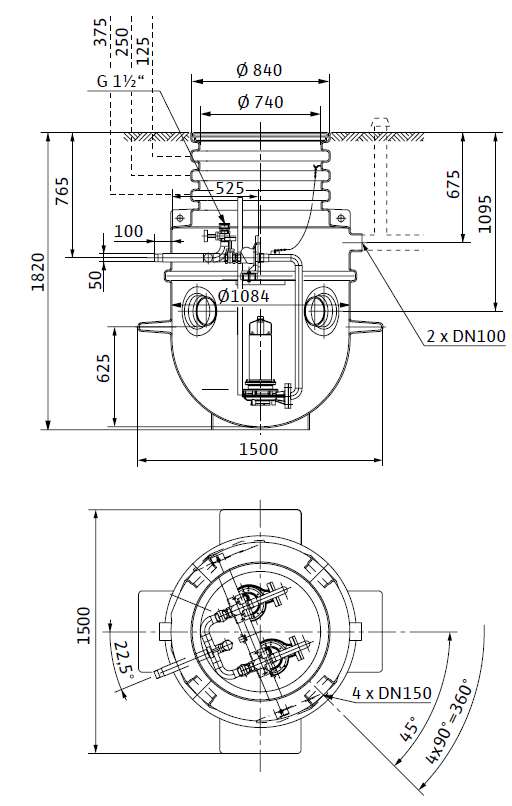 Wilo-DrainLift WS 1100 - Шахтна насосна станція для установки в грунт. Готова до монтажу шахта з синтетичного матеріалу в якості станції з одним або двома насосами для монтажу в грунті, з чотирма патрубками для підключення припливних трубопроводів. Шахта з синтетичного матеріалу має чотири зовнішніх бічних ребра для захисту від спливання. Дно шахти має напівкруглу форму, щоб мінімізувати ризик відкладень на дні і максимально збільшити стабільність форми.
